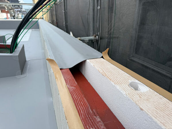 雨水は目に見えないところからじわじわ入り込み、時間をかけて建物の寿命を削っていきます。収益ビルの価値を維持するために、通常防水の下にプラスで防水シートを張り込み、二段構えの防水加工をしています。